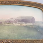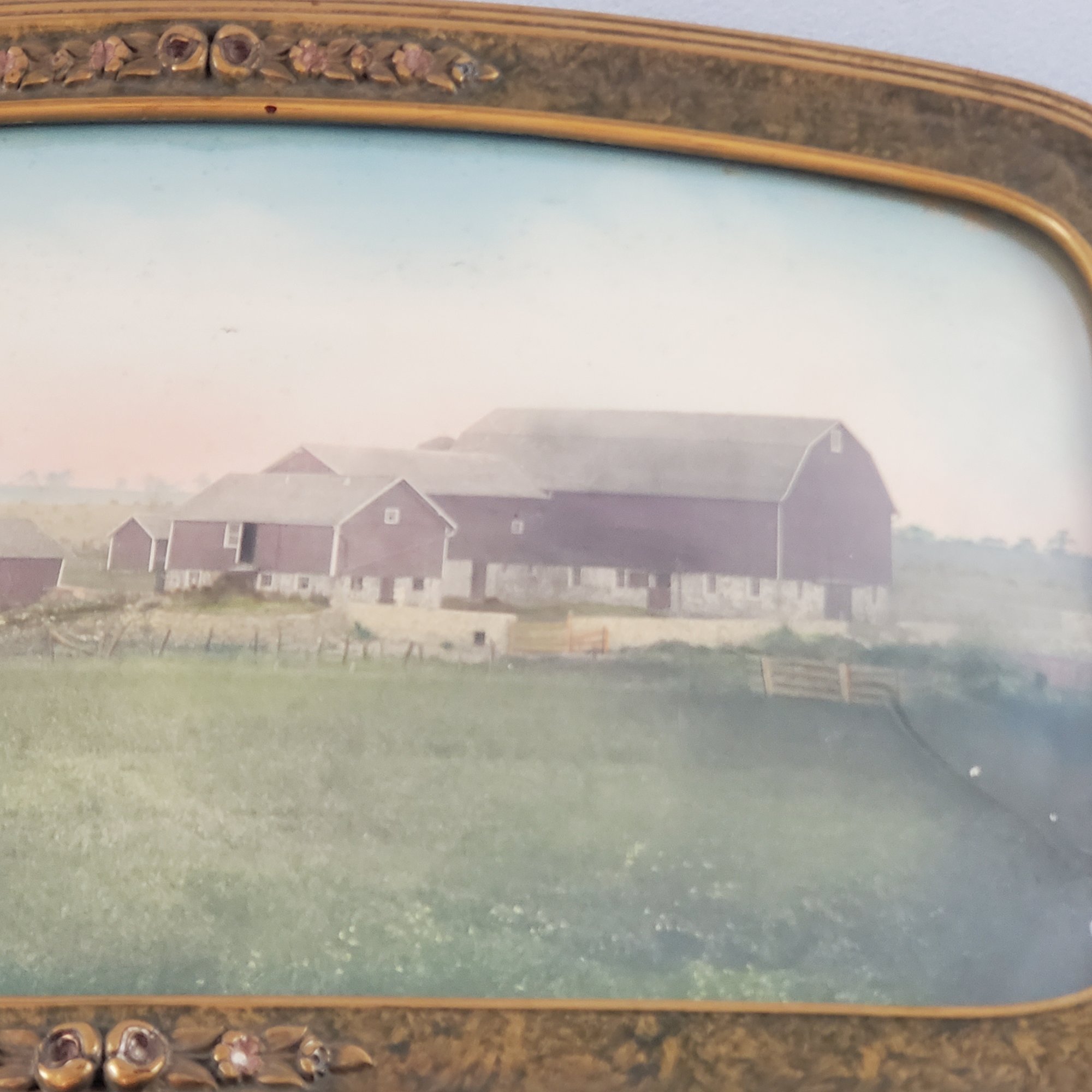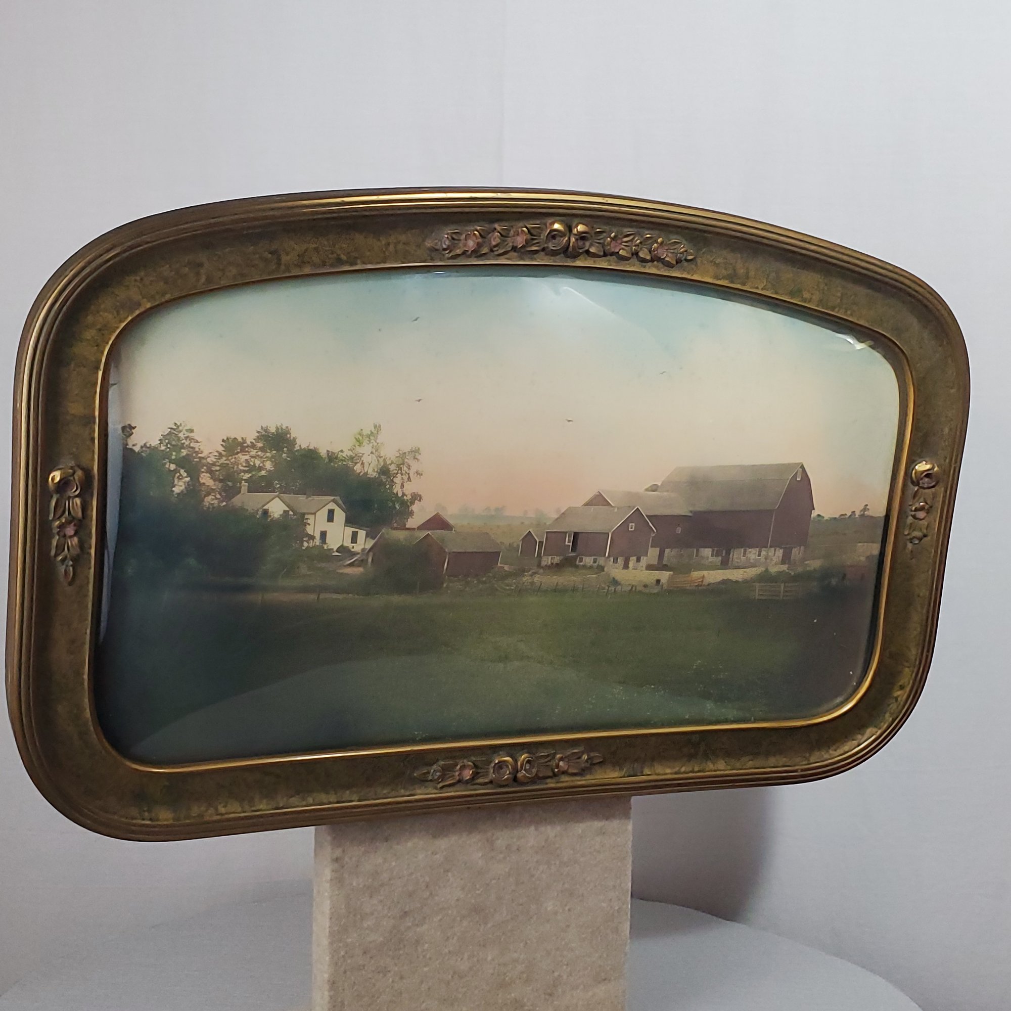 Antique Aerial Farm Picture with Domed Convex Bubble Glass, #940