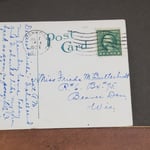 Back stamp says Chicago Portrait Company/ $8.50. There is also another purchase date on the inside of of the backing with a June 21 1924 date. The post card with the owners address is also there.