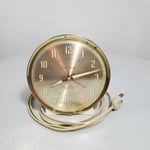 Big Ben electric alarm clock style 7, white case with brass trim and gold dial. Production years of 1959 through 1964, this one was made in 1960.