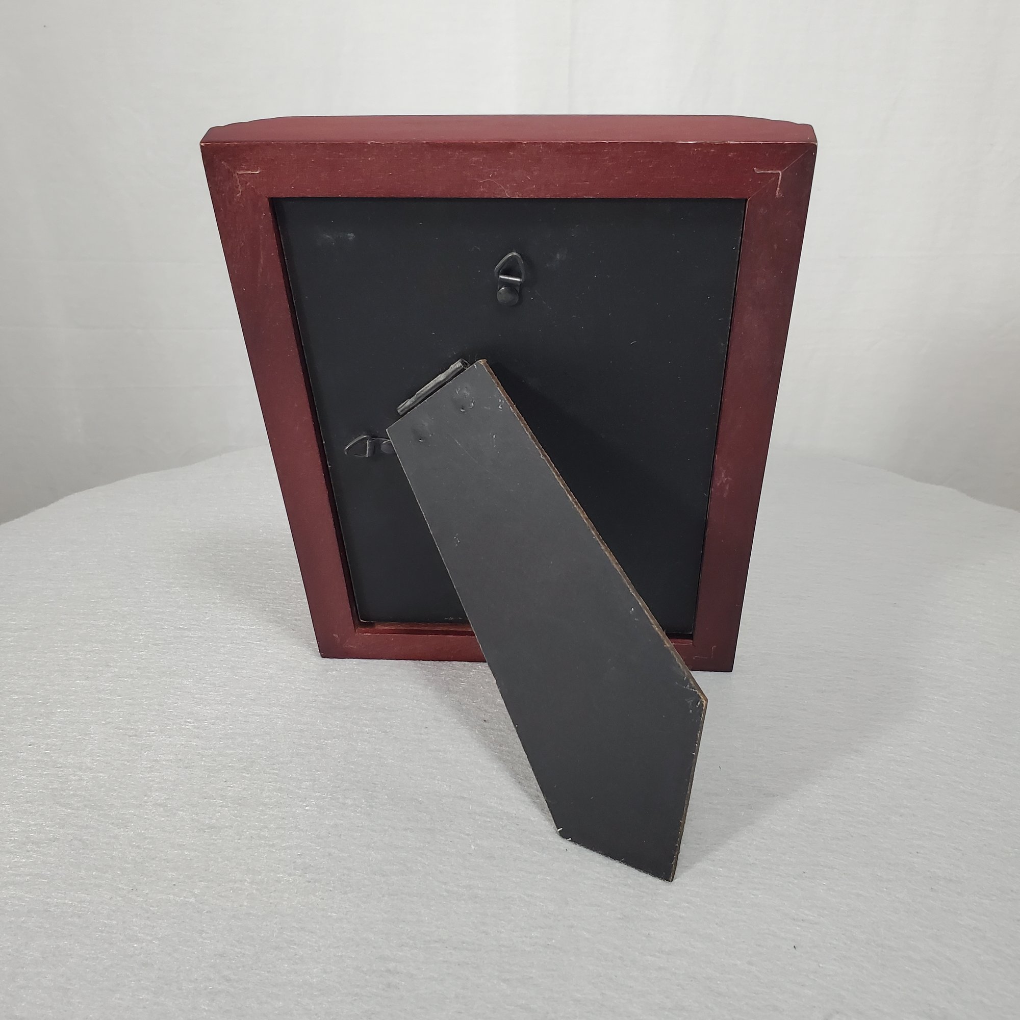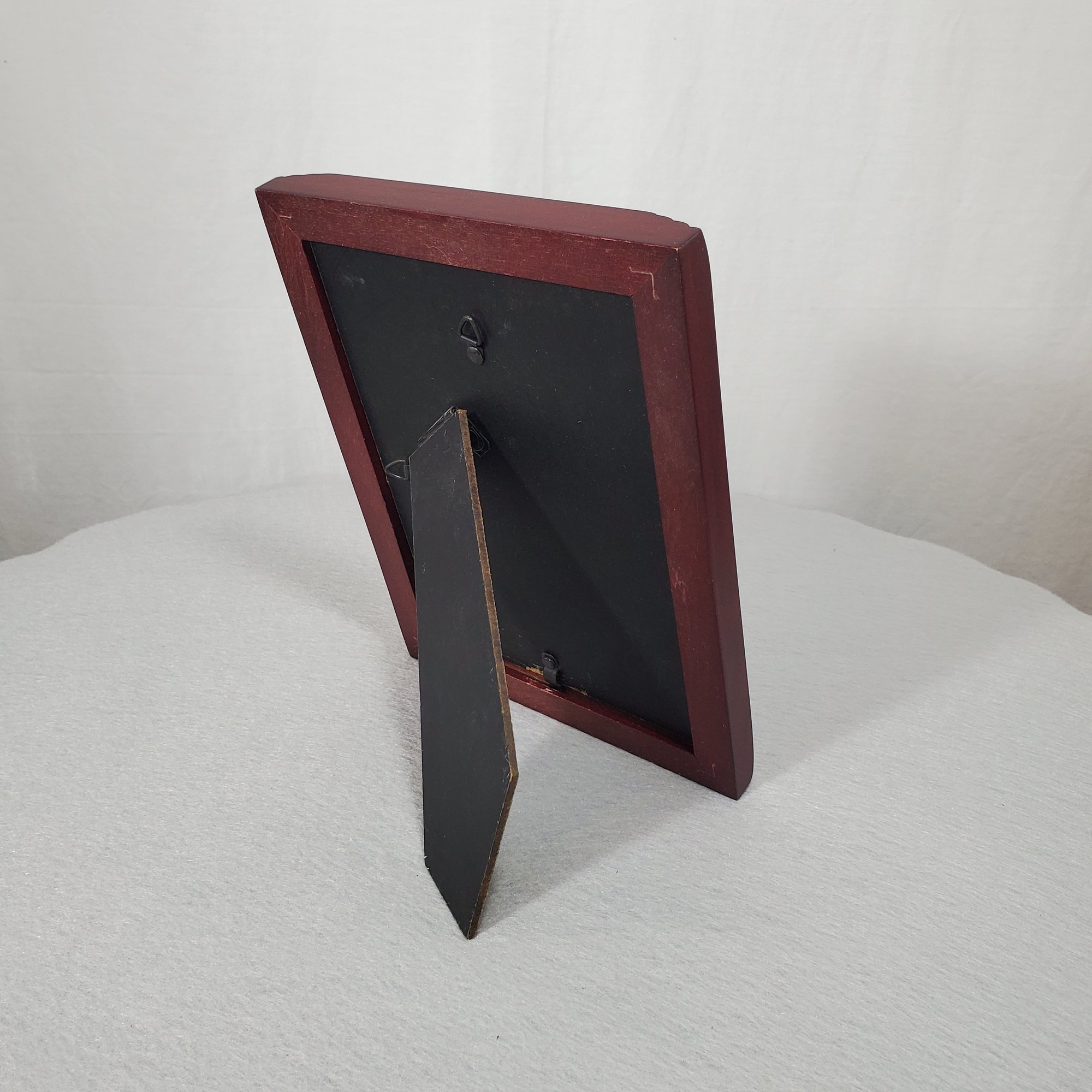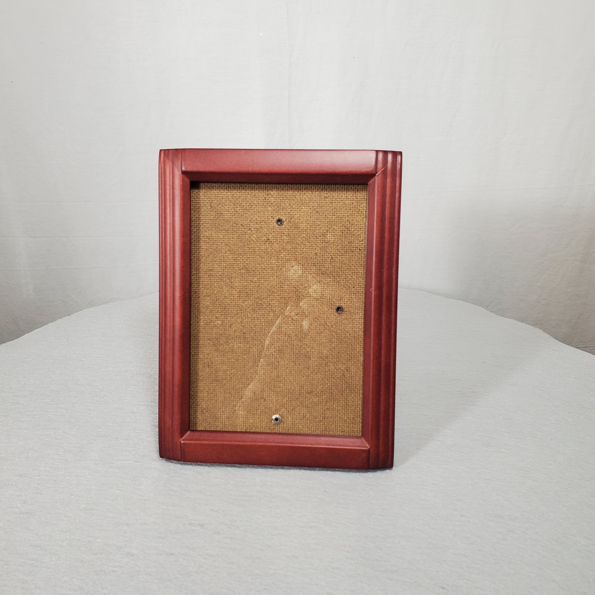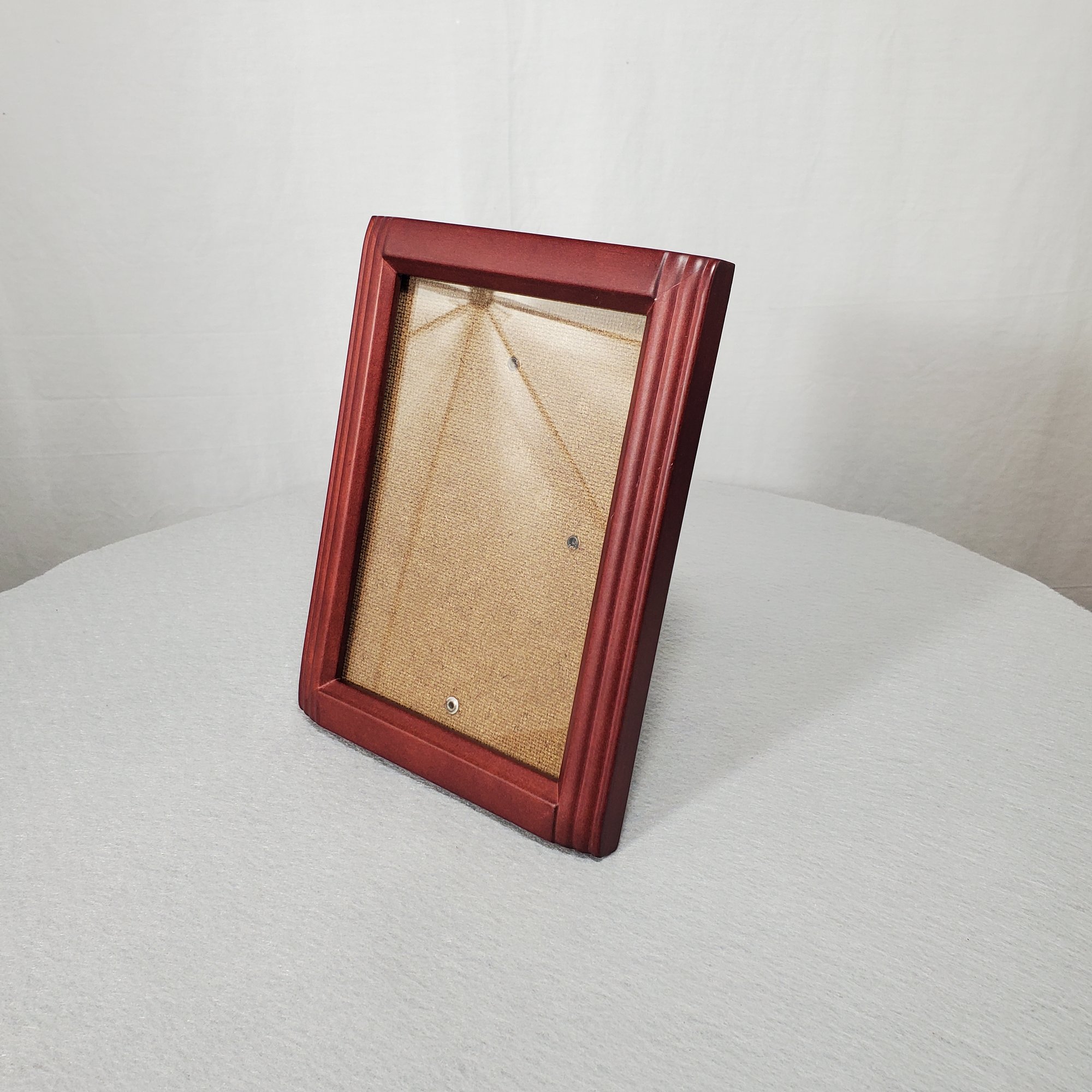 5x7 wood picture frame with a burgundy finish. This frame is very well made and has fluted side rails, easy back one tab removal for picture changes.
