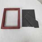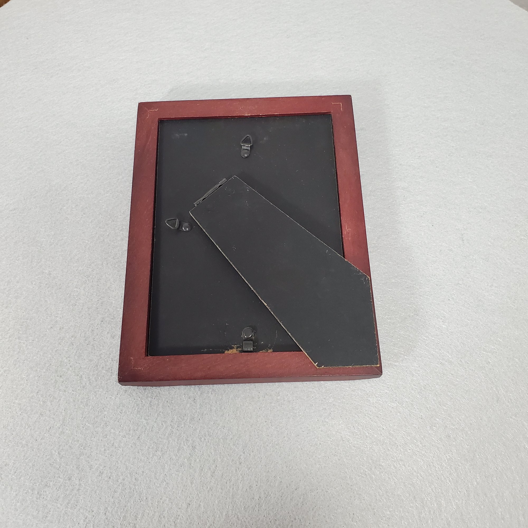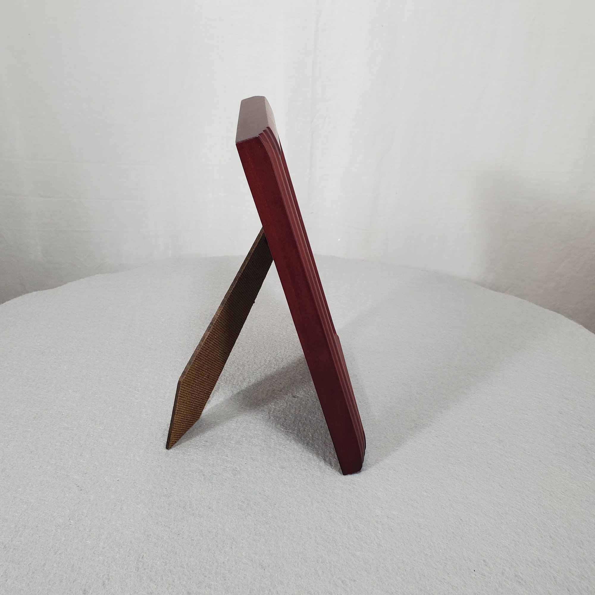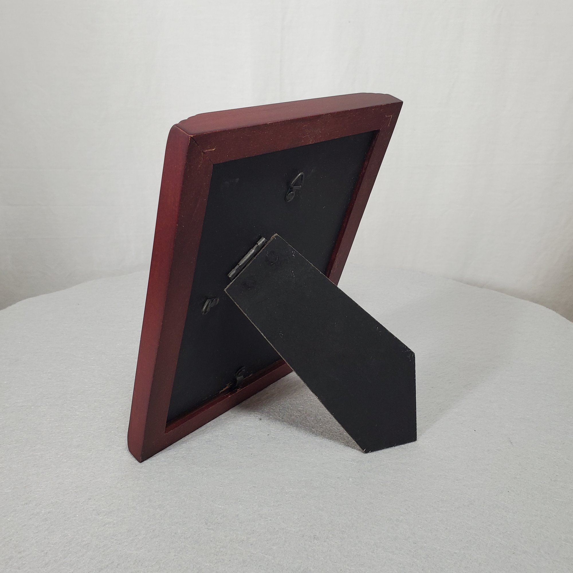 5x7 wood picture frame with a burgundy finish. This frame is very well made and has fluted side rails, easy back one tab removal for picture changes.