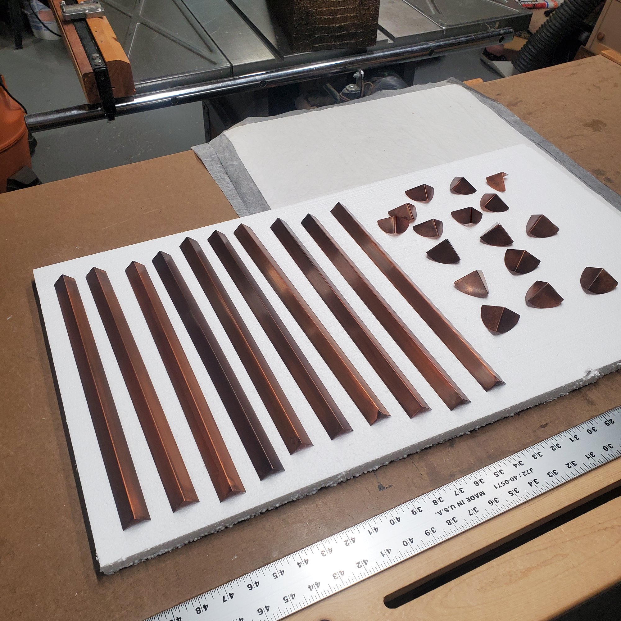 The last photo shows the copper edging after the hand rubbed finish was applied.